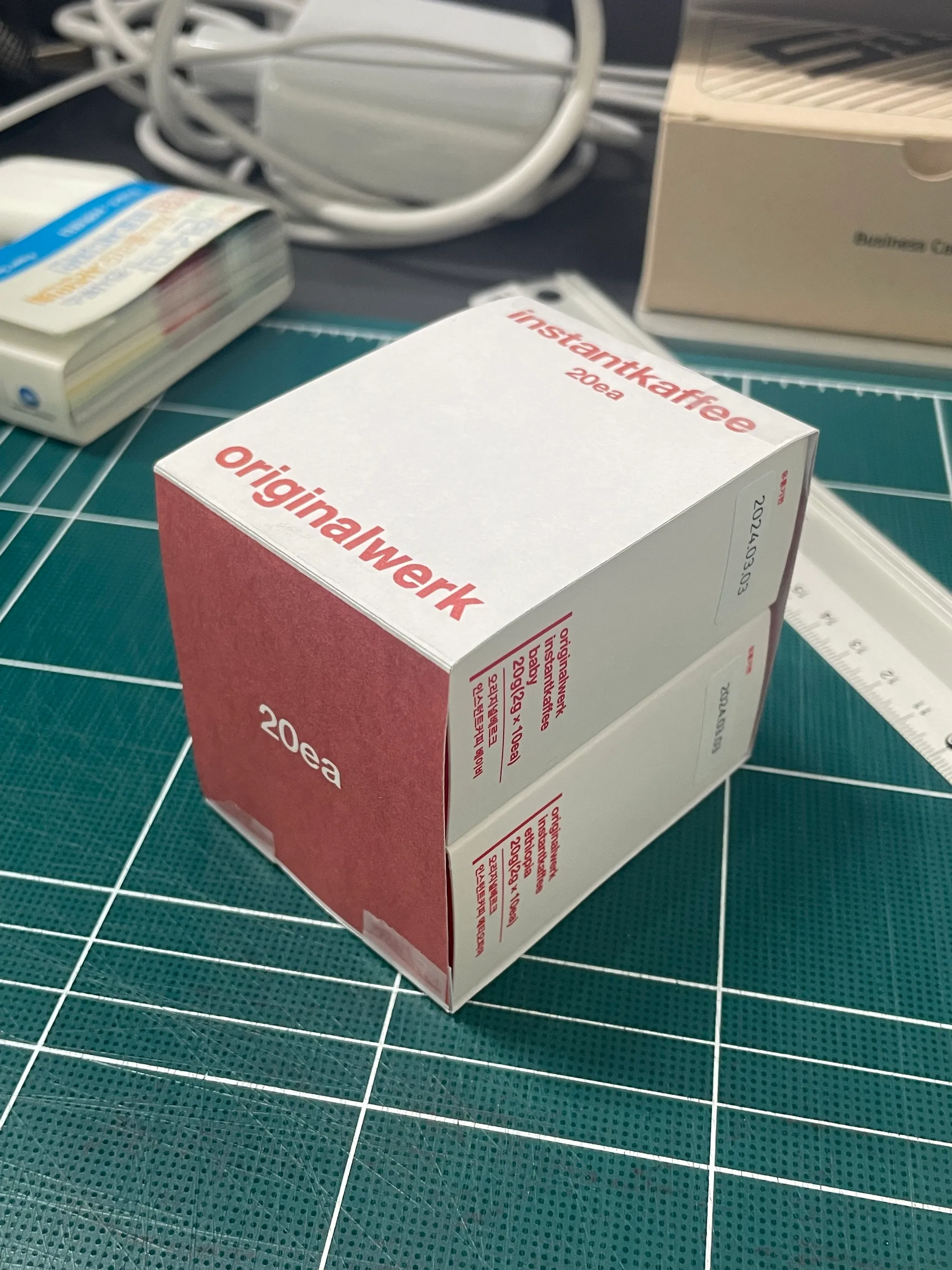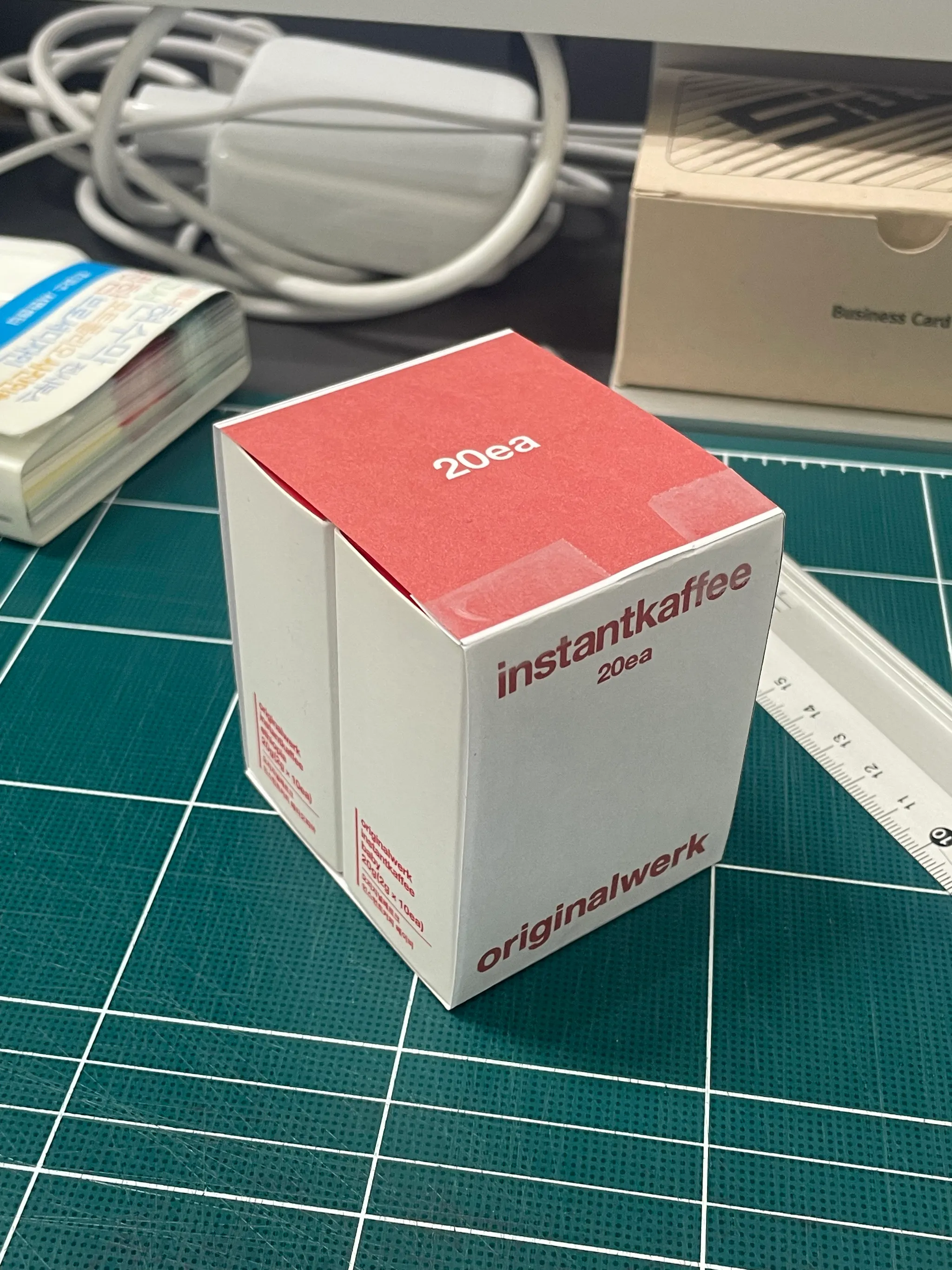 인스턴트커피의 특성상 선물이라기엔 가격보다 부피감이 없어 한 박스로는 부족한 느낌을 줄 수 있었어요. 그 부분을 개선하고자 두개를 엮는 띠지를 제작해보려고요.