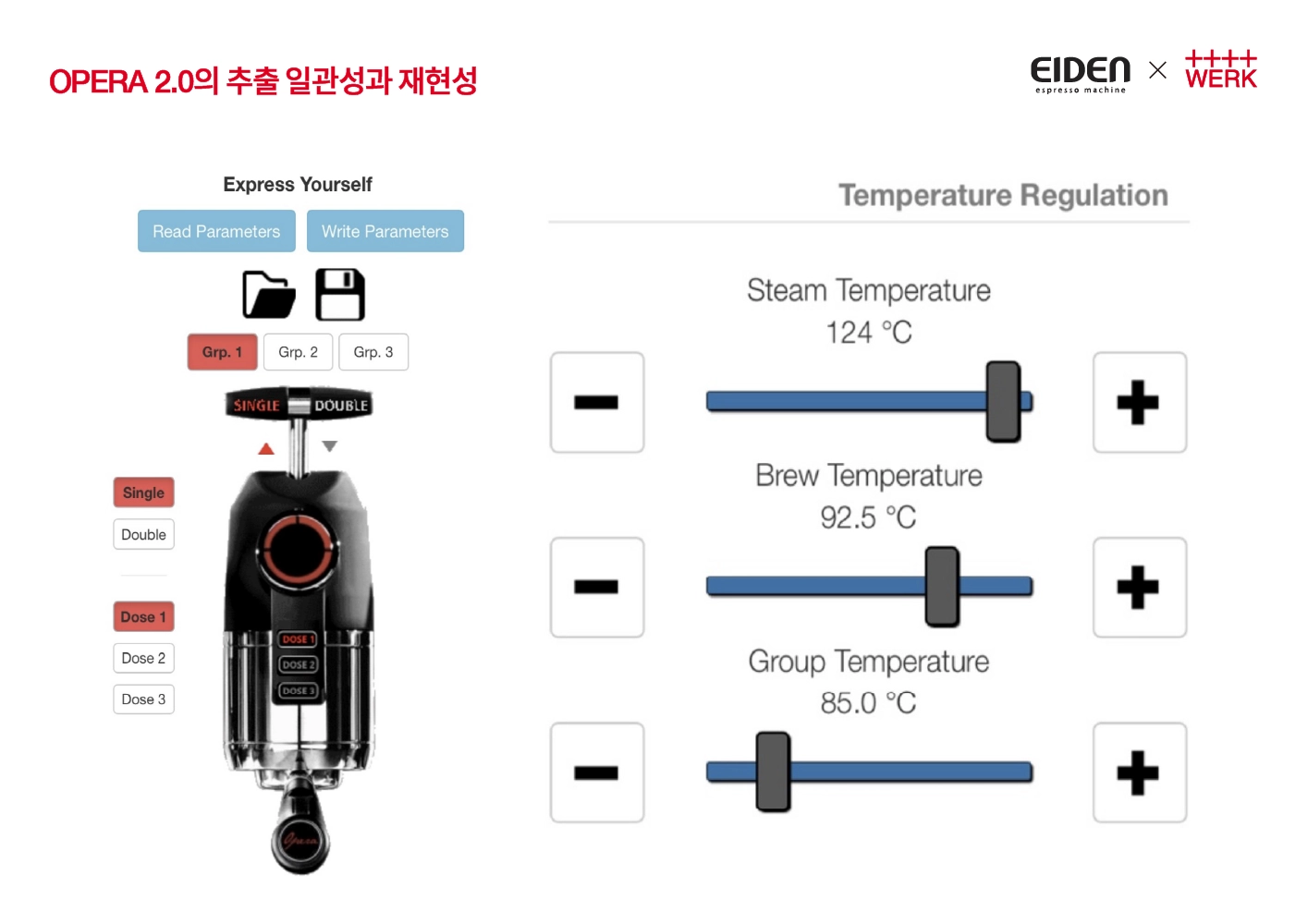 재우 | 쇼룸 바리스타 | 지속적인 추출에도 흔들림 없는 추출 온도 및 셋팅 값