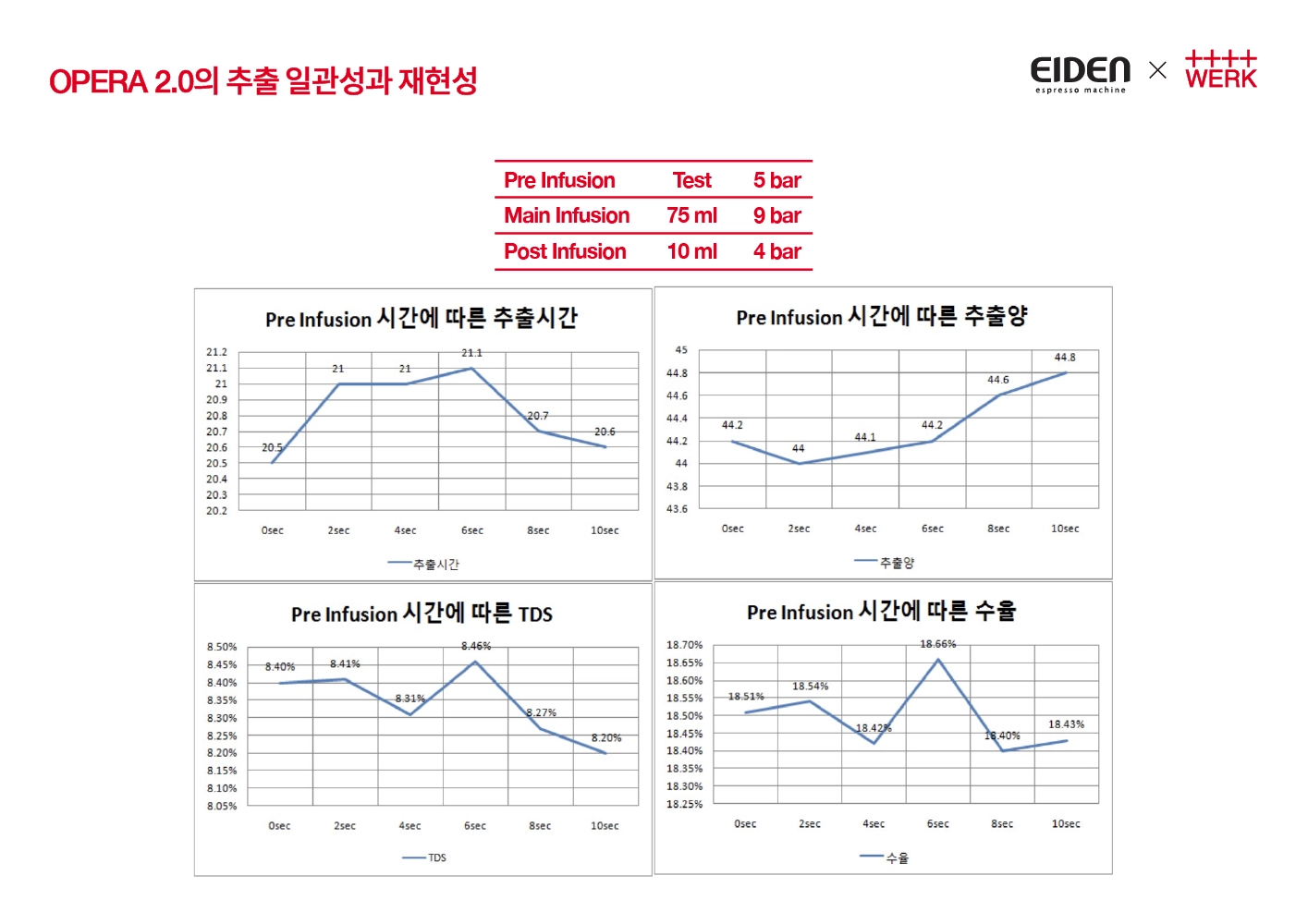 연속 추출시에도 좋은 일관성을 나타내었습니다. 추출양이나 추출시간을 봐서는 확인 할 수 없지만,