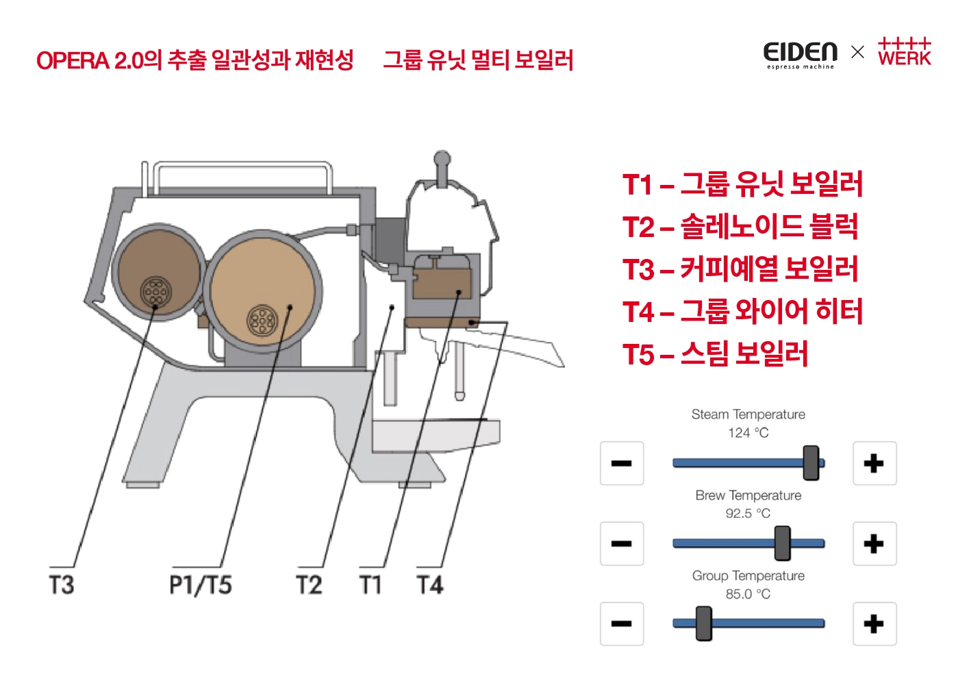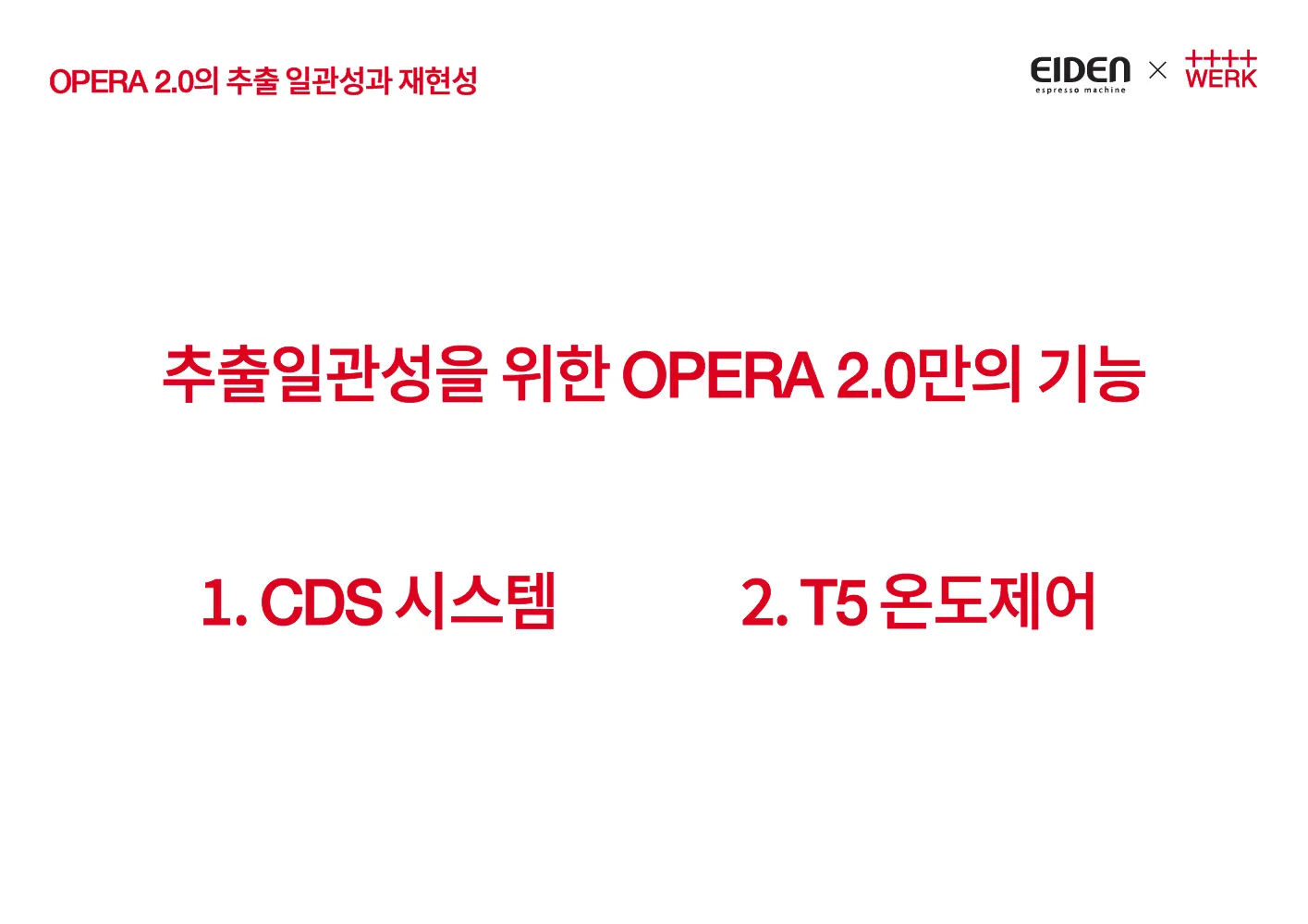 그 중에서도 오페라 2.0의 경우 CDS 시스템과, T5 온도제어의 기능들이 추출 일관성에 많은 영향을 미친다고 생각됩니다.