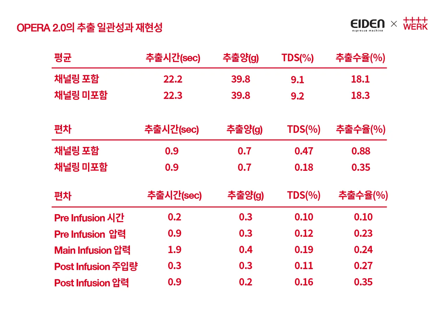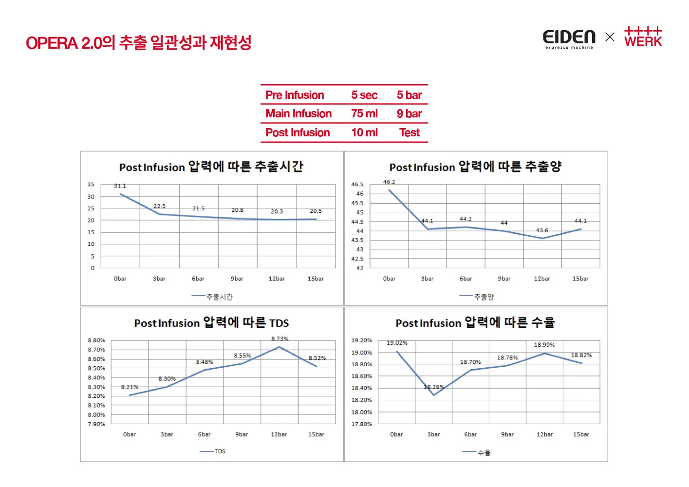=> 이러한 부분들에 대해 정확한 데이터를 얻기 위해 오페라 2.0의 추출일관성에 대해 다양한 테스트를 거쳤고, 추출 일관성에서 좋은 능력을 갖춘 머신이라고 생각됩니다.