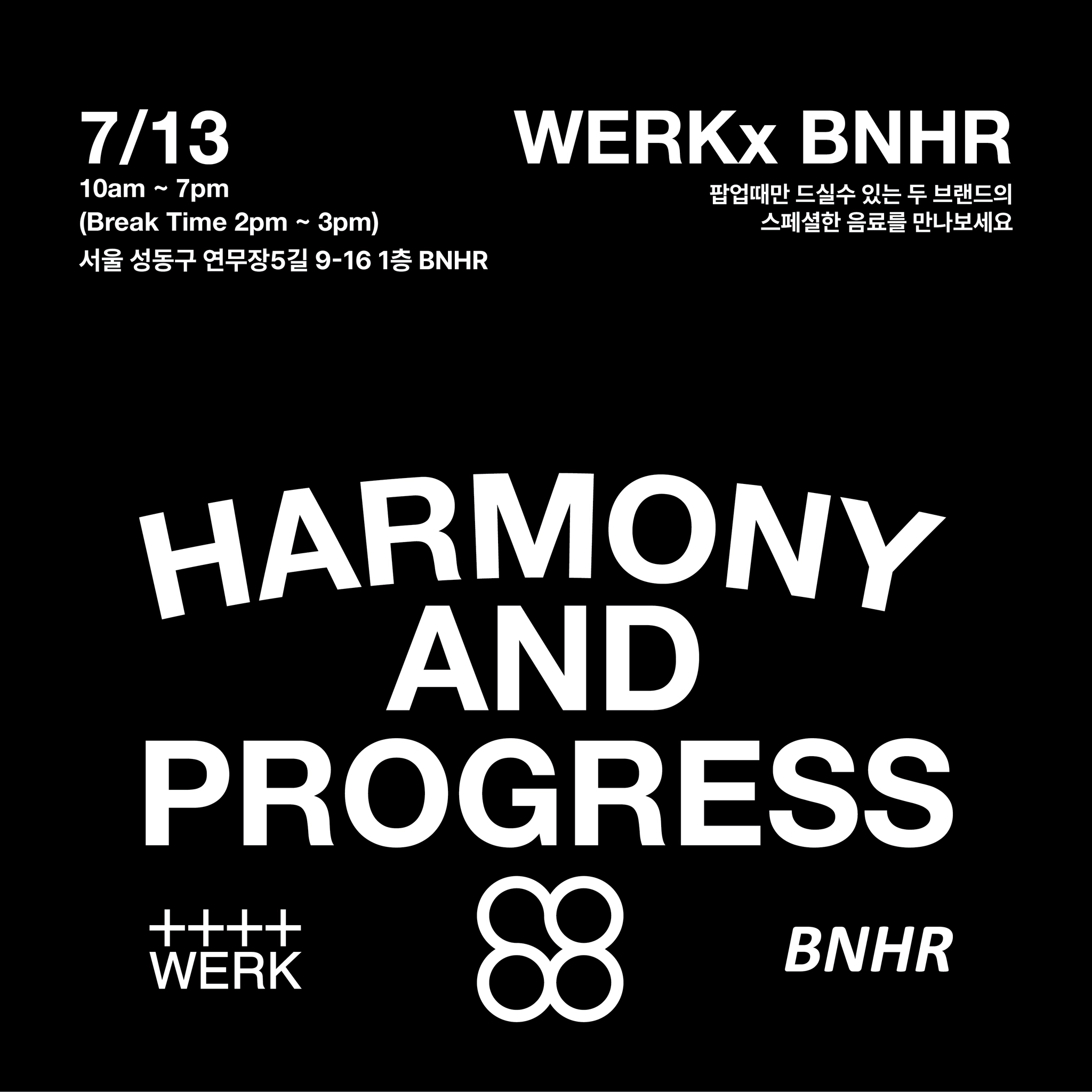 베르크는 작년부터 시작한 전국투어를 통해 다양한 지역에서 커피의 가치를 전하고 있습니다. 이번에는 오랜 시간 함께 한 BNHR와 의미 있는 시간을 만들고자 합니다. BNHR은 성수에 위치한 카페로 ‘화합과 전진’이라는 슬로건 하에 활기찬 분위기 속 커피를 즐길 수 있는 곳입니다.