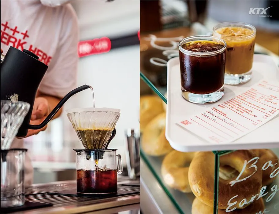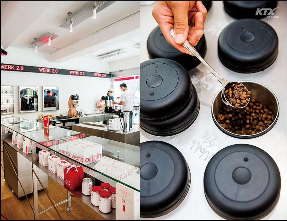 2018년부터 전포동 골목을 지켜 온 ‘베르크로스터스’가 지난봄 한층 진화한 모습으로 돌아왔다. 벽면을 가로지르는 전광판과 미끈한 스테인리스스틸 선반이 흡사 공항의 출국 심사대를 떠오르게 하는데, 입구에서 QR코드를 인식해 ‘주문 가이드’를 따르는 일련의 과정마저 탑승 수속 절차처럼 엄정하다. 우선 블랙과 화이트, 두 계열의 메뉴 중 하나를 골라야 한다. 이때 블랙은 에스프레소·아메리카노·필터 커피를, 화이트는 라테와 슈가라테를 아우른다. 이것저것 두루 맛보고 싶은 이에겐 에스프레소, 아메리카노, 라테 중 두 가지를 한 번에 즐길 수 있는 테이스팅 세트가 제격이다. 메뉴를 고른 뒤엔 8종의 원두 중 하나를 택한다. 자신의 직감을 믿기 어렵다면 조언을 구해 본다. 스스로를 ‘베르커’라 지칭하는 이곳의 커피 전문가들이 입맛에 꼭 맞는 원두를 판별해 줄 것이다. 가령 ‘서핑 베이비’ 블렌드는 이 계절에 어울리는 쾌활한 향미를 지녔다고 귀띔하는 식이다. 주문 뒤엔 짧은 기다림이 이어지지만, 베르커의 바지런한 손놀림을 구경하느라 지루할 틈은 없다. 커피를 건네받곤 널찍한 2층으로 올라간다. 이제 남은 것은 하나. 느릿한 음악이 드리운 공간에 앉아 커피 한잔의 충만감을 음미하는 일뿐이다.