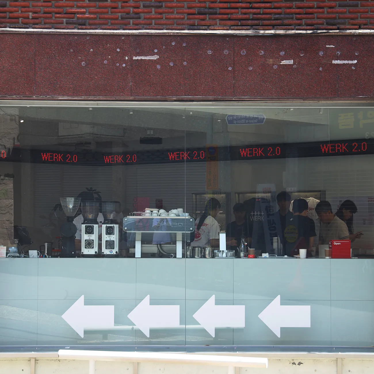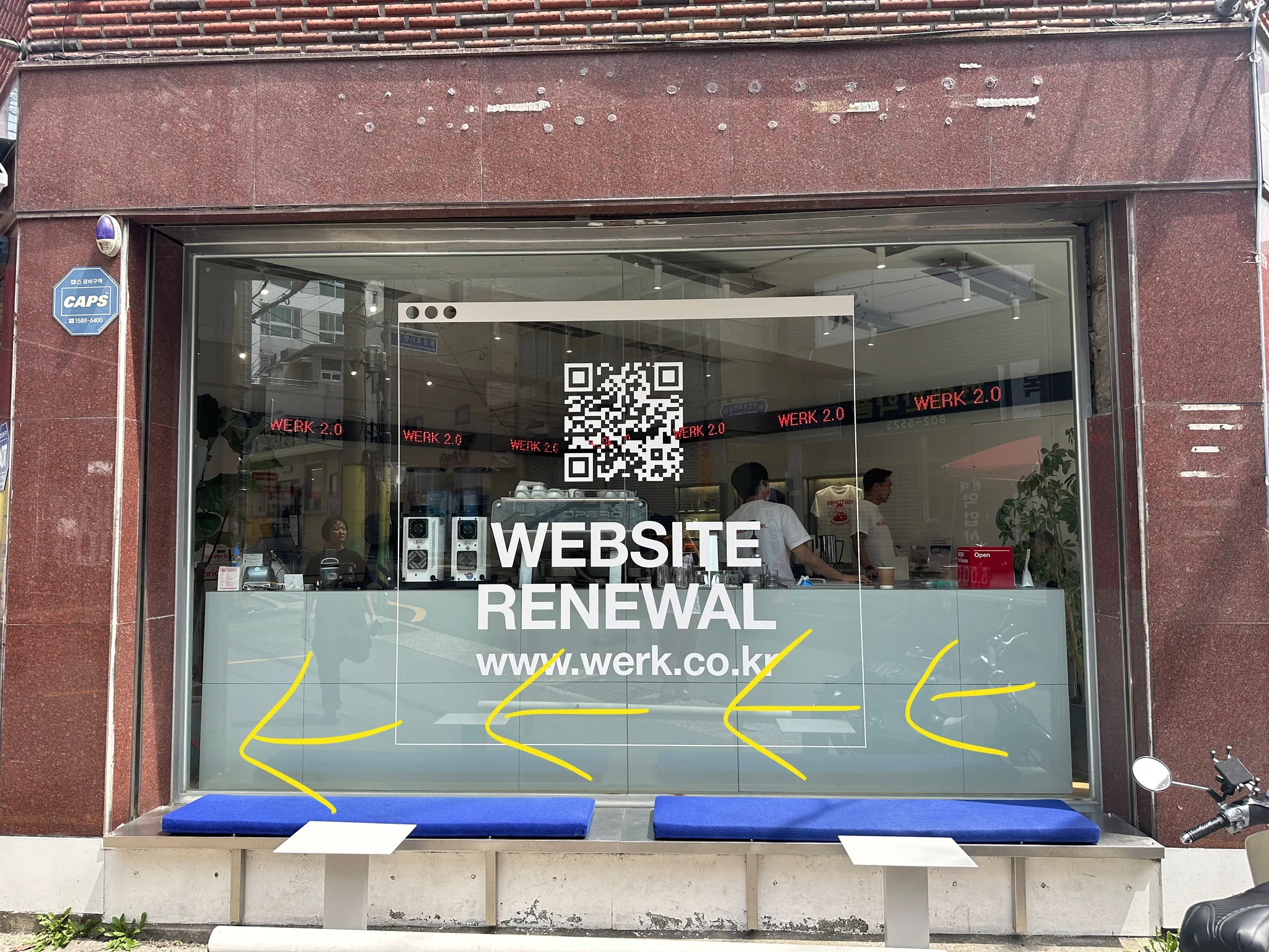 통창으로 되어 있지만 확실한 입구 표식이 없고, 손님들의 불편함을 없애고자 여러 사인을 만들어 표시해보자고 의견이 나왔습니다.